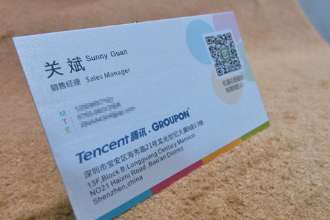 名片版面颜色丰富或有大面积色块,我们推荐选择300g铜版纸名片